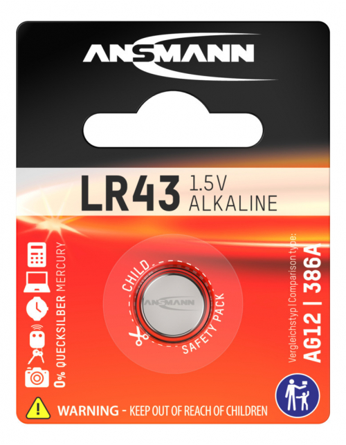 Alkaline-knoopcel LR43 / LR1142 / AG12 / 1,5 V - eerste klasse kwaliteit met lange houdbaarheid