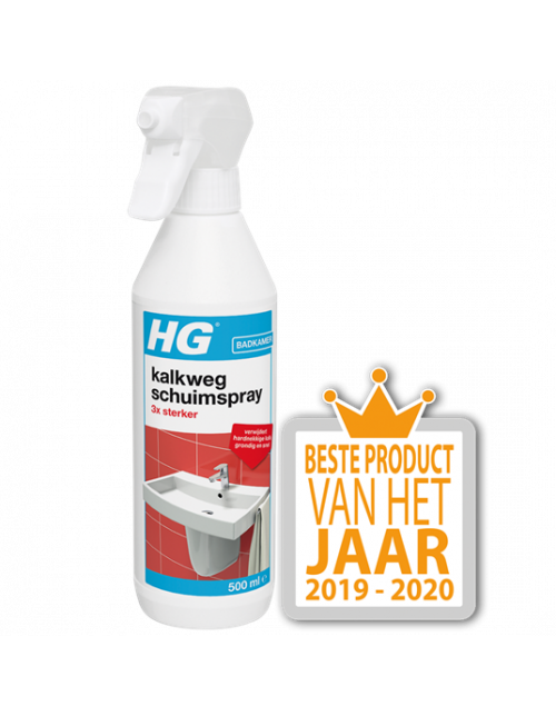 Hardnekkige kalkaanslag verwijderen? HG kalkweg schuimspray 3x sterker is speciaal ontwikkeld om grondig en snel zeer hardnekkige kalkaanslag te verwijderen. Na gebruik blijft er een stralende glans achter. Dit product is uitermate geschikt om dergelijke hardnekkige kalkaanslag, die uiteindelijk een zeer doffe waas zal geven, te verwijderen van tegels, douchecabines, kunststof baden, wastafels, kranen, douchekoppen en aanrechtbladen.