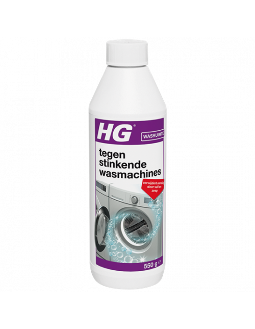 HG tegen stinkende wasmachines. Verwijdert aanslag en vuil in de afvoerleidingen. Wasmachines kunnen minder fris ruiken of zelfs gaan stinken. Aanslag van vuil en resten van het (vloeibare) wasmiddel in de afvoerleidingen, filters en rubbers zijn hiervan de oorzaak. Onze wasmachinereiniger reinigt de hele wasmachine zeer effectief en zorgt zo voor een schone en weer heerlijk fris ruikende wasmachine.