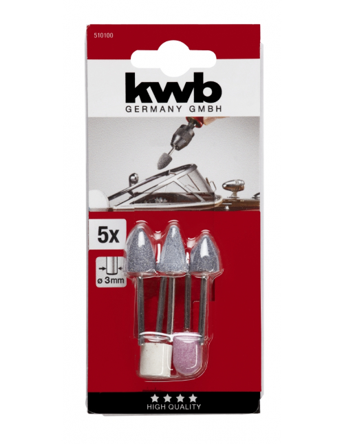 kwb Keramische miniatuurslijpstiften, set, 5-delig -- Keramische miniatuurslijpstiften, set, 5-delig, normaal korund, om bramen te verwijderen, lasnaden glad te maken en oppervlakken fijn te schuren, voor metaal, glas, keramiek en kunststof, voor gebruik in miniboormachinesystemen en flexibele assen.