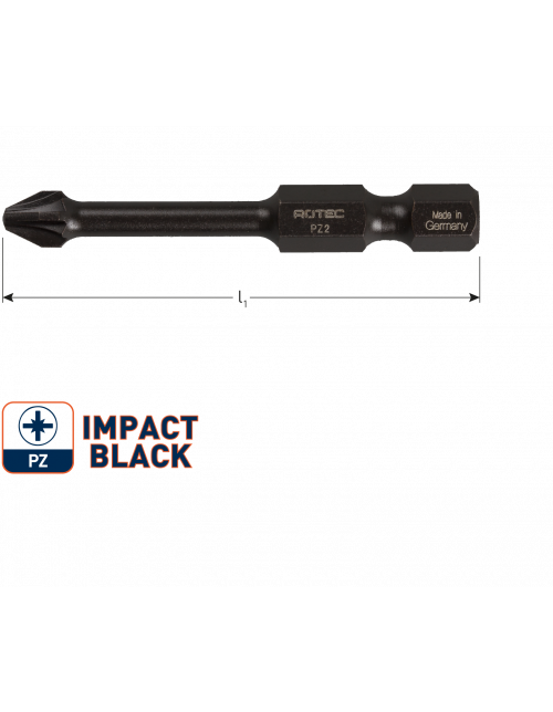 Black-impact schroefbits tbv impact-slagschroefmachines. De aangepaste optimale geometrie vormt samen met het geharde speciaalstaal de basis voor een perfecte taaie schroefbit. Ideale schroefbit om in te zetten onder de zwaarst denkbare omstandigheden. Verpakt in kleinverpakking.