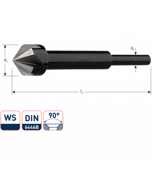 Verzinkboor volgens DIN 6446B met afgedraaide schacht, 90°, schachtlengte 30 mm.