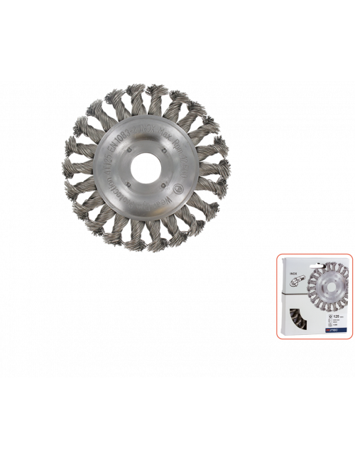 Voor rechtstreekse montage op de haakse slijper. Deze borstel is uitermate geschikt voor onder andere uitborstelen van lasnaden en scherpe hoeken. Uitstekend geschikt voor het verwijderen van slak, verf en oxidatie op chroomnikkel staalsoorten, inclusief roestvast staal.