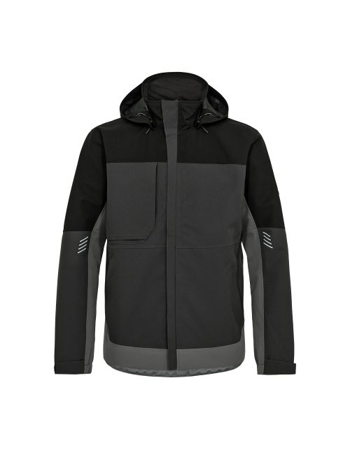 Deze shelljas is ontworpen met de focus op functionaliteit en comfort. Hij is gemaakt van Ripstop met mechanische stretch voor meer bewegingsvrijheid. De jas is zowel water- als winddicht en heeft getapete naden voor extra bescherming. Voor extra comfort heeft de jas een zachte en windbeschermende binnenkraag. De praktische en afneembare capuchon maakt de jas zeer bruikbaar in vele verschillende werksituaties. De jas heeft ook een verborgen rits aan de voorkant met een smalle sluiting die beschermt tegen krassen. De vele praktische zakken bieden veilige opbergruimte, waaronder een ruime borstzak en twee zijzakken met ritsen, evenals een praktische binnenzak met klittenbandsluiting. Een D-ring in de rechter zijzak maakt het gemakkelijk om items zoals een ID-kaart te bevestigen. Voor een perfecte pasvorm heeft de jas elastische en klittenbandverstelling aan de onderkant van de mouwen, waardoor individuele aanpassing mogelijk is. Reflecterende opdruk op de mouwen en rug verhoogt de zichtbaarheid in donkere omgevingen, terwijl het verlengde rugpand extra bescherming biedt voor de onderrug. Er is ook voldoende ruimte voor bedrijfsbranding.