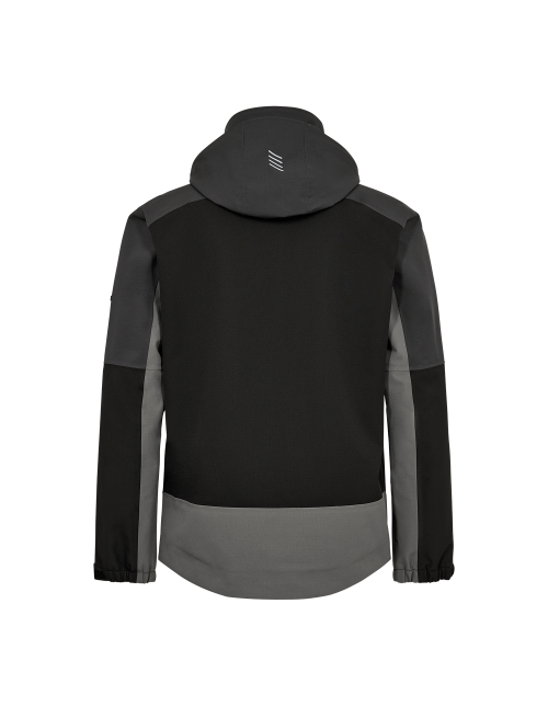 Deze shelljas is ontworpen met de focus op functionaliteit en comfort. Hij is gemaakt van Ripstop met mechanische stretch voor meer bewegingsvrijheid. De jas is zowel water- als winddicht en heeft getapete naden voor extra bescherming. Voor extra comfort heeft de jas een zachte en windbeschermende binnenkraag. De praktische en afneembare capuchon maakt de jas zeer bruikbaar in vele verschillende werksituaties. De jas heeft ook een verborgen rits aan de voorkant met een smalle sluiting die beschermt tegen krassen. De vele praktische zakken bieden veilige opbergruimte, waaronder een ruime borstzak en twee zijzakken met ritsen, evenals een praktische binnenzak met klittenbandsluiting. Een D-ring in de rechter zijzak maakt het gemakkelijk om items zoals een ID-kaart te bevestigen. Voor een perfecte pasvorm heeft de jas elastische en klittenbandverstelling aan de onderkant van de mouwen, waardoor individuele aanpassing mogelijk is. Reflecterende opdruk op de mouwen en rug verhoogt de zichtbaarheid in donkere omgevingen, terwijl het verlengde rugpand extra bescherming biedt voor de onderrug. Er is ook voldoende ruimte voor bedrijfsbranding.
