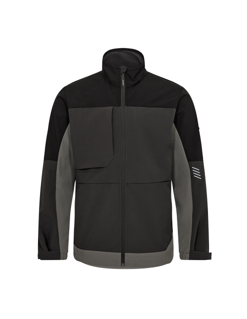 Deze softshelljas is ontworpen om functionaliteit en comfort te combineren, waardoor hij ideaal is voor een actieve werkdag. De jas is gemaakt van een lichtgewicht en rekbaar materiaal dat zorgt voor extra bewegingsvrijheid. Voor extra comfort heeft de jas een zachte en windbeschermende binnenkraag. De jas heeft een praktische rits aan de voorkant en diverse ruime zakken, zoals een borstzak, twee zijzakken en een binnenzak op de borst – allemaal met rits. De mouwen zijn voorzien van elastiek voor een nauwsluitende en comfortabele pasvorm, terwijl de klittenbandsluiting aan de onderkant van de mouwen het gemakkelijk maakt om de jas aan te passen. Voor verdere aanpassing heeft de jas een trekkoord aan de onderkant. Reflecterende prints op beide mouwen en de achterkant verhogen de zichtbaarheid. De jas biedt ook voldoende ruimte voor bedrijfslogo's.