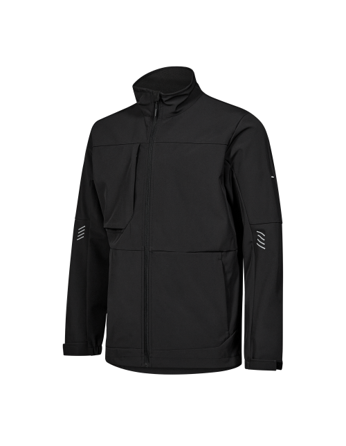 Deze softshelljas is ontworpen om functionaliteit en comfort te combineren, waardoor hij ideaal is voor een actieve werkdag. De jas is gemaakt van een lichtgewicht en rekbaar materiaal dat zorgt voor extra bewegingsvrijheid. Voor extra comfort heeft de jas een zachte en windbeschermende binnenkraag. De jas heeft een praktische rits aan de voorkant en diverse ruime zakken, zoals een borstzak, twee zijzakken en een binnenzak op de borst – allemaal met rits. De mouwen zijn voorzien van elastiek voor een nauwsluitende en comfortabele pasvorm, terwijl de klittenbandsluiting aan de onderkant van de mouwen het gemakkelijk maakt om de jas aan te passen. Voor verdere aanpassing heeft de jas een trekkoord aan de onderkant. Reflecterende prints op beide mouwen en de achterkant verhogen de zichtbaarheid. De jas biedt ook voldoende ruimte voor bedrijfslogo's.