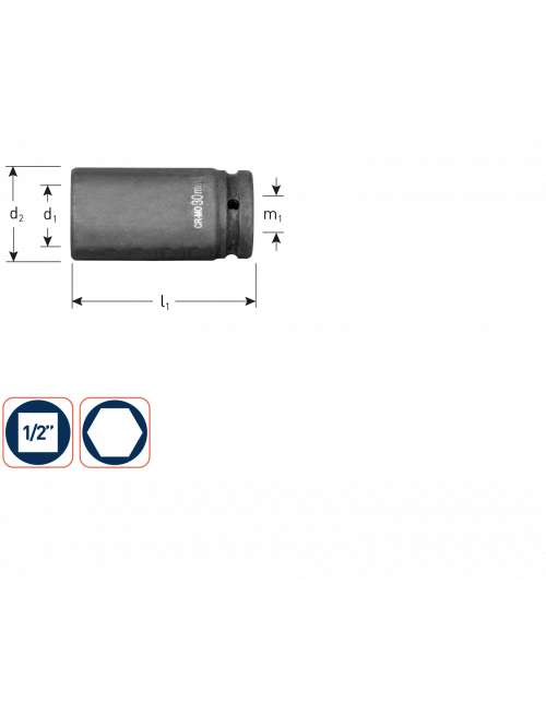 KRACHTDOP, BINNENVIERKANT 1/2", LANG, L=80, SW 13