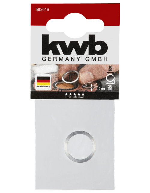 kwb Verloopringen voor cirkelzaagbladen -- Verloopringen voor alle gangbare cirkelzaagbladen met gaten van Ø 20 mm naar Ø 16 mm en gaten van Ø 30 mm naar Ø 16 mm, Ø 20 mm en Ø 25 mm.