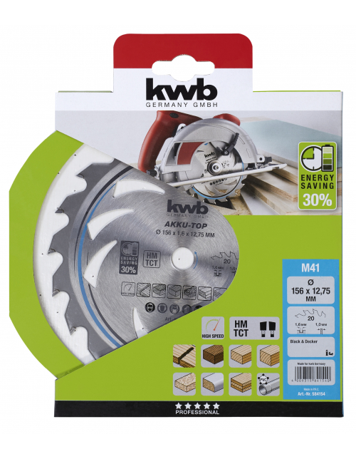 kwb Dun zagend cirkelzaagblad, met hardmetaal versterkt, ø 156 x 12.75 mm -- Met spaansleuven voor meer vermogen en sneller werken, met hardmetaal versterkt, nauwkeurige, schone zaagsnede, bijzonder geschikt voor accu-handcirkelzagen, ook geschikt voor machines met snoer. Voor massief hout, spaanplaten met coating (werk- en keukenwerkbladen), meubel-, spaan- en hardvezelplaten en glasvezelversterkte kunststof.