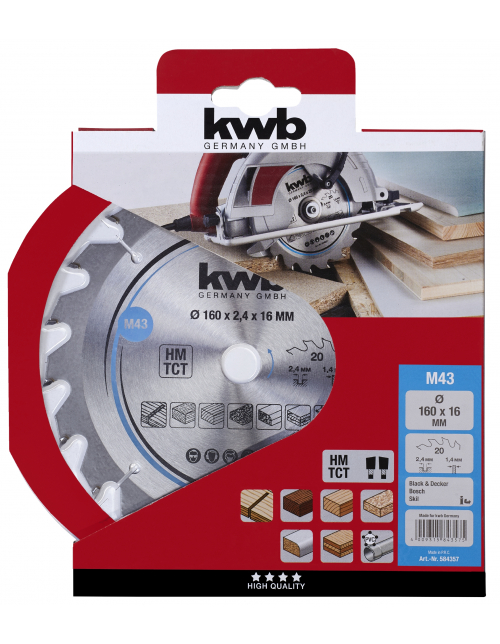 kwb Spaanplaat-cirkelzaagbladen voor cirkelzagen ø 160 x 16 mm -- Met hardmetaal versterkt, snelle en zuivere snede. Normaal getand, voor handcirkelzagen. Voor massief hout, spaanplaten met coating (werk- en keukenwerkbladen), meubel-, spaan- en hardvezelplaten en glasvezelversterkte kunststof.