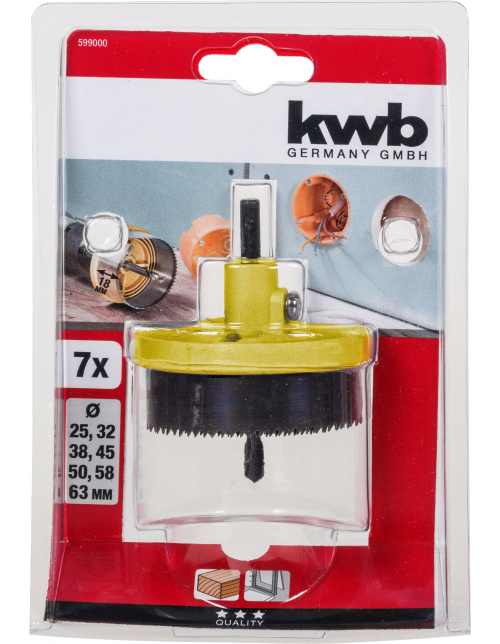 kwb Meergatenzagen, 7-delig -- Gatenzaag, 7-delig, steunschijf van gietaluminium, zaagkrans van gehard veerstaal, voor gebruik in hout, gipsplaten en lichte bouwplaten.