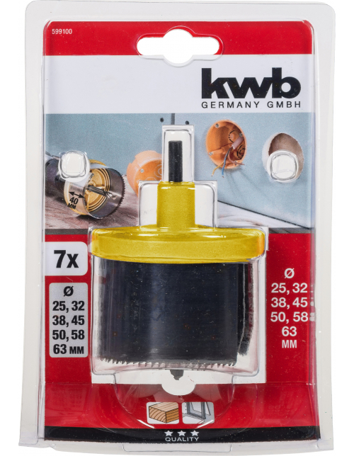 kwb Meergatenzagen, 7-delig -- Gatenzaag, 7-delig, steunschijf van gietaluminium, zaagkrans van gehard veerstaal, voor gebruik in hout, gipsplaten en lichte bouwplaten.