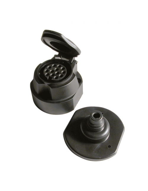 Carpoint 13-polige Jäger stekkerdoos voor auto of camper. Met alle basisfuncties voor verlichting en extra aansluiting voor achteruitrijverlichting, mistachterlicht, constante voeding en geschakelde voeding voor koelkast. Met bajonetsluiting.