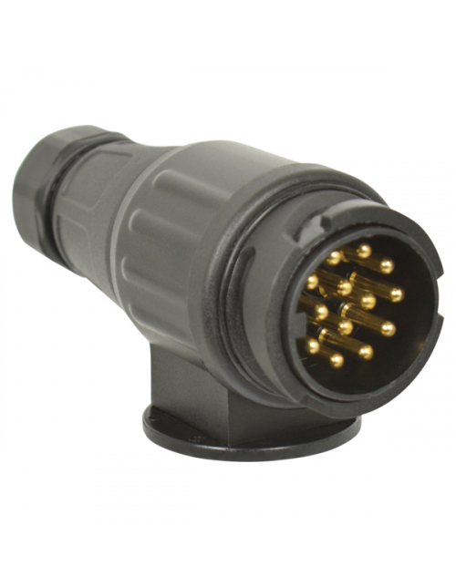 Carpoint 13-polige Jäger aansluitstekker voor fietsdrager, caravan of aanhanger. Alle basisfuncties voor verlichting en extra ansluiting voor achteruitrijverlichting, mistachterlicht, constante voeding en geschakelde voeding voor koelkast. Met bajonetsluiting.