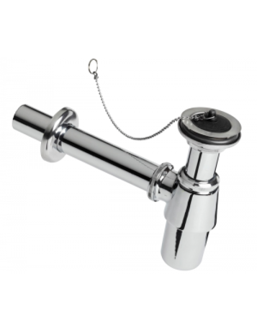 Plugbekersifon verchroomd. Met muurbuis, rozet, rubber stop.