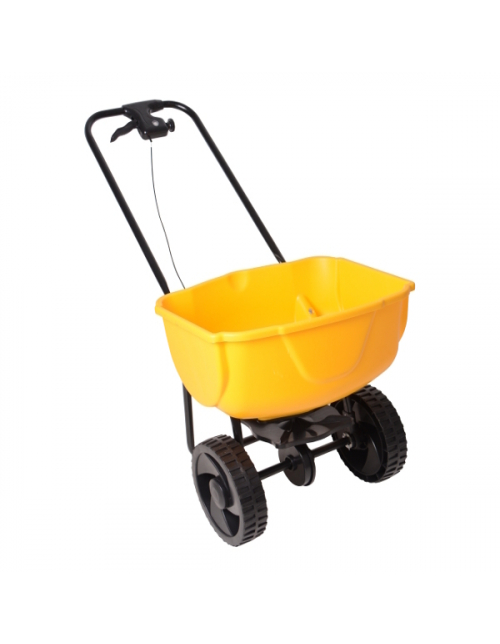 Tuinstrooimachine handbediendHandige uitstrooimachine met handbediende verstrooiïng. Strooi hoeveelheid kan worden ingesteld door middel van een draaiknop met schaalverdeling. Uitgevoerd met grote kunststof bak 35Ltr en grote wielen.
