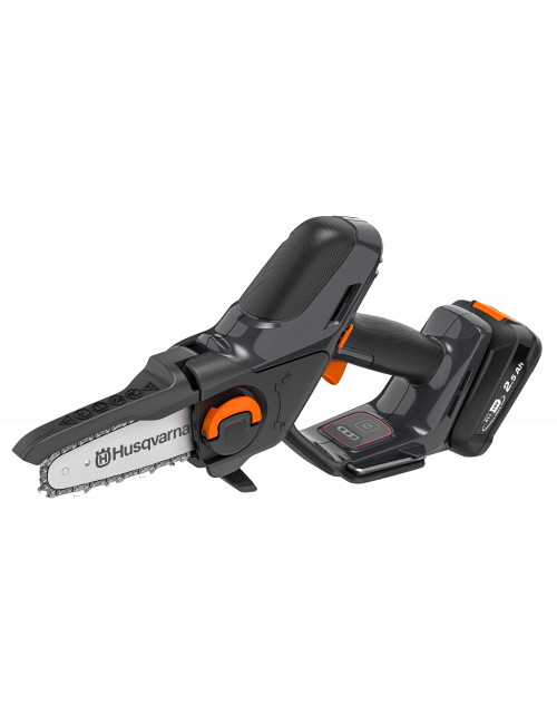 Compacte draagbare accu-snoeizaag, perfect voor het snoeien van bomen, het kappen van tuinafval en kleiner timmerwerk. Deze allround mini-snoeizaag is gebaseerd op onze bewezen expertise op het gebied van kettingzagen en is robuust genoeg om gemakkelijk takken van 75 mm breed te zagen. Uitgerust met een gemakkelijke en gereedschapsloze vervanging van ketting en zaagblad en verbeterde veiligheid met een anti-slip handvat en automatische uitschakeling wanneer onbeheerd achtergelaten. Opbergen is gemakkelijk gemaakt met de meegeleverde haak en onderdeel van het 18V POWER FOR ALL-accusysteem.