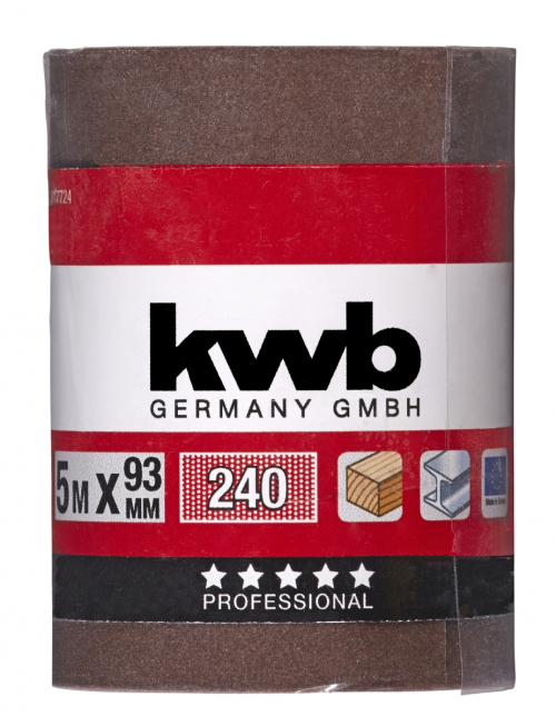 kwb Schuurmiddelrollen, hout en metaal, korund -- Schuurmiddel op rollen, HOUT & METAAL, korund, met aluminiumoxide bestrooid, lLengte 5 m, breedte 93 en 115 mm, geschikt voor alle gewoon verkrijgbare schuurmachines en voor handmatig schuren, voor het schuren van metaal, hout, verf, lak, plamuur, steen en kunststof.