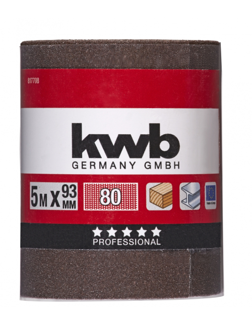 kwb Schuurmiddelrollen, hout en metaal, korund -- Schuurmiddel op rollen, HOUT & METAAL, korund, met aluminiumoxide bestrooid, lLengte 5 m, breedte 93 en 115 mm, geschikt voor alle gewoon verkrijgbare schuurmachines en voor handmatig schuren, voor het schuren van metaal, hout, verf, lak, plamuur, steen en kunststof.
