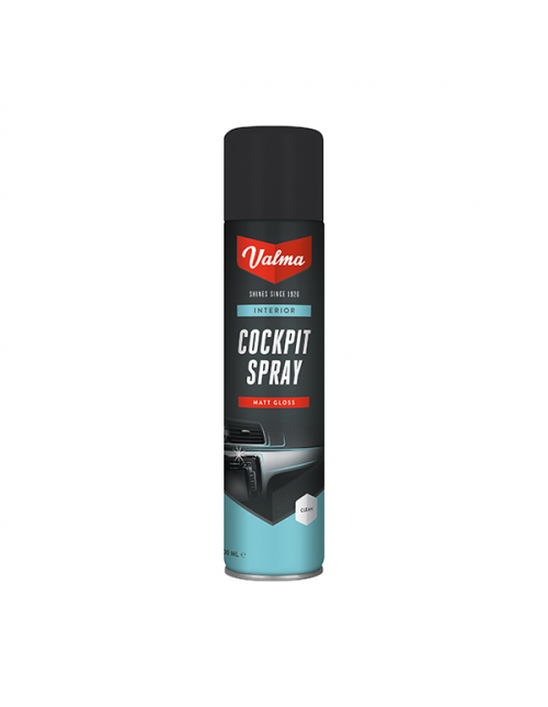 Valma cockpitspray Matt Gloss reinigt, verzorgt en brengt glans terug op alle kunststofdelen en leren onderdelen. Cockpitspray stoot stof af, is antistatisch en verzorgt het dashboard, kunststof deurgrepen of consoles. De Matt Gloss uitvoering zorgt ervoor dat het interieur niet erg gaat glimmen.